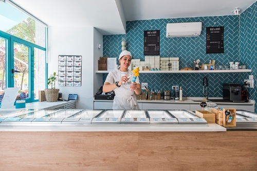 La enseña se caracteriza por ofrecer helado artesanal elaborado frente al cliente, además de propuestas novedosas como helados para perros (Bibau), repostería casera y cubitos de helado (Cubì). - Inversión: